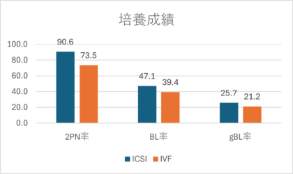 2PN率(正常授精率) 顕微授精 90.6%、体外受精 73.5%
